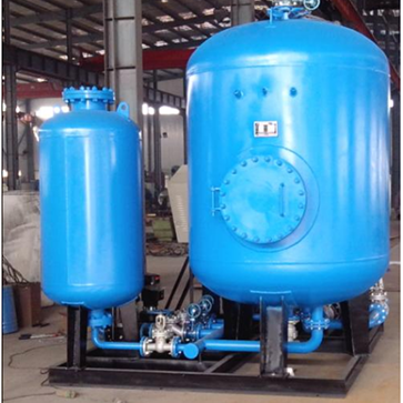 換熱機組相當于一個完整的“換熱站”及“定壓站”,集中了熱量交換和控制管網的壓力。其原理為一次側熱媒經過溫控系統進入板式交換器放出熱量后排入冷凝水箱;二次側低溫水經過循環泵進入版式換熱器后送出。溫度傳感器設在二次側出水口,將溫度信號反饋至溫控系統,調節熱煤流量從而控制二次側的出水溫度。穩壓泵接收壓力傳感器壓力信號,自動向管網供水,同時水也進入定壓罐,當管網的水壓達到一定壓力后,停止供水,由定壓罐定壓,保持管網壓力恒定。